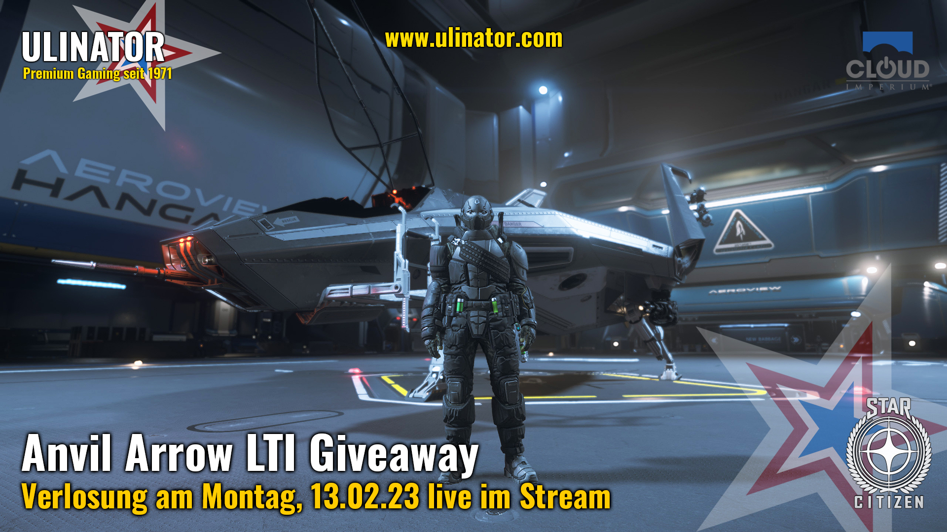 Am Montagabend, dem 13.02.2023 ab 22:00 Uhr, gibt es wieder etwas zu gewinnen - eine Anvil Arrow inkl. Starterpack und LTI, sponsored by CIG. Jeder kann mitmachen, um diesen perfekten Jäger für Neulinge, Fortgeschrittene und Rennflieger zu gewinnen.