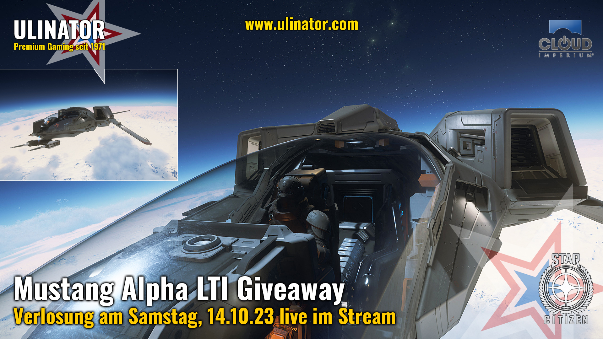 Am Samstagabend, dem 14.10.23, ab 22:30 Uhr, gibt es wieder etwas zu gewinnen - eine Mustang Alpha mit LTI und inkl. Gamepackage, sponsored by CIG. Jeder kann mitmachen, also kommt vorbei!