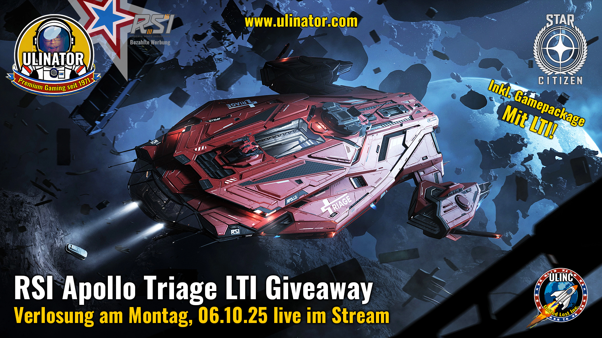 Am Montagabend, dem 06.10.25 ab 21:00 Uhr, gibt es wieder etwas zu gewinnen - die neue RSI Apollo Triage inkl. LTI und Gamepackage! Jeder kann mitmachen, alle haben die gleiche Chance - also kommt vorbei!